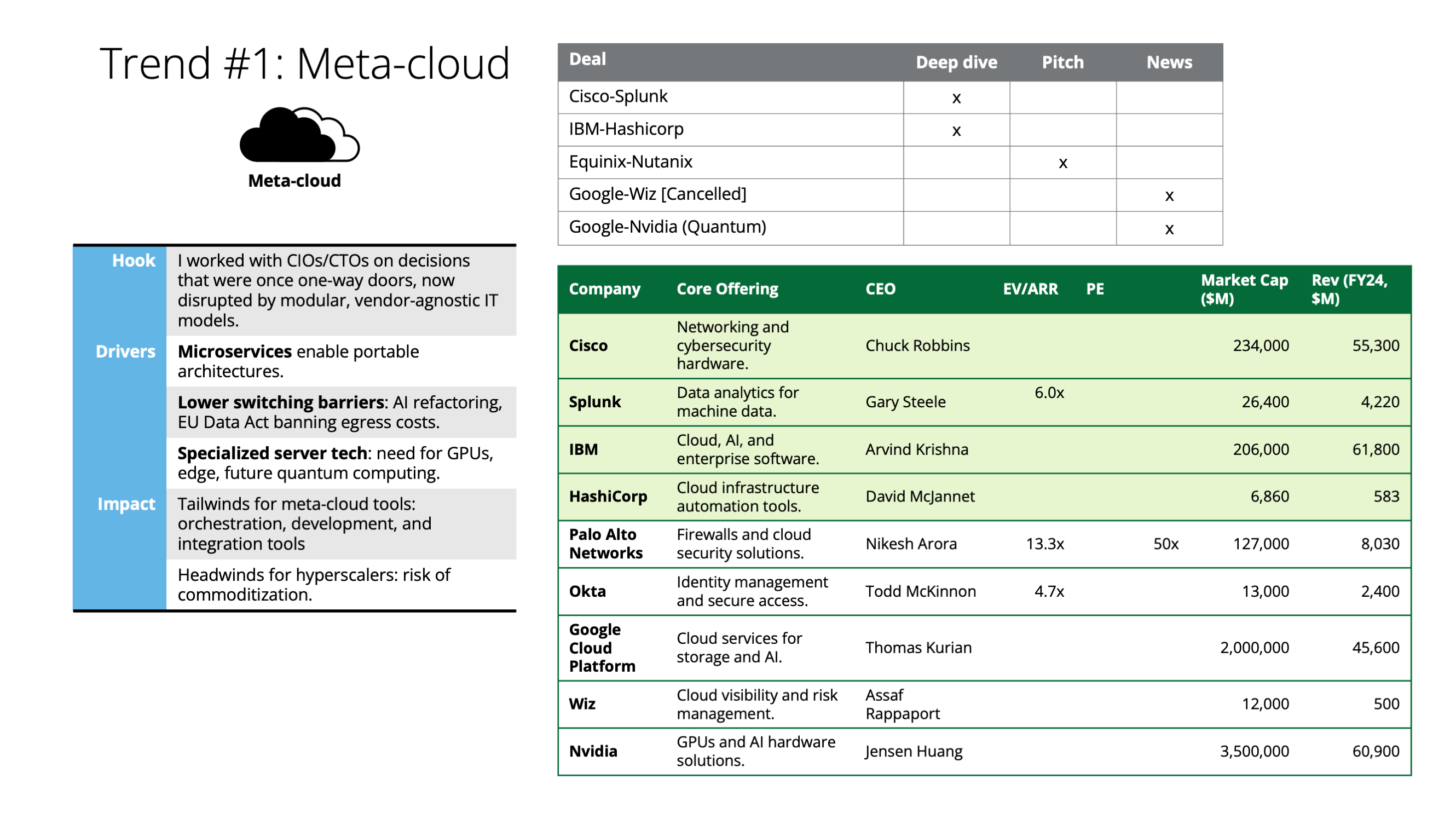 | Proof | Deals: IBM acquiring HashiCorp ($6.4B), Cisco acquiring Splunk |